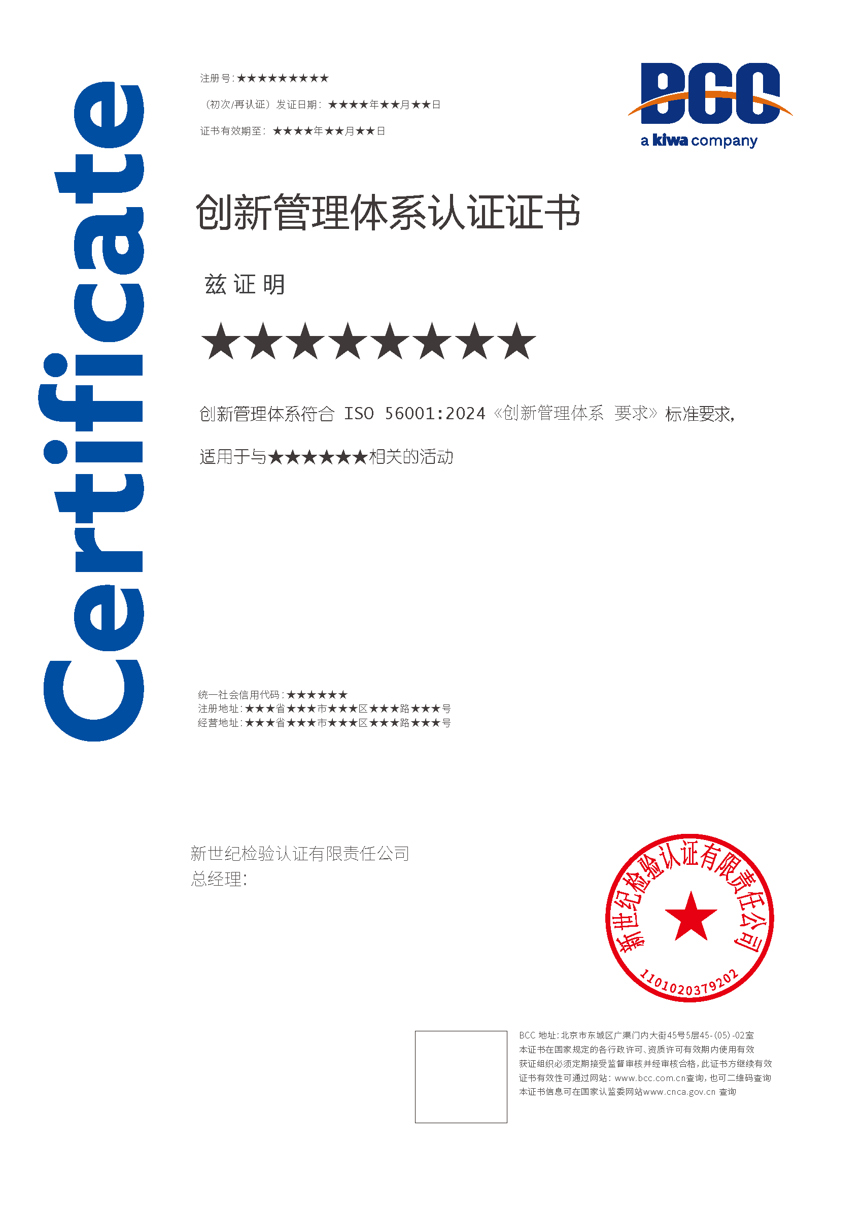 本頁涉及的認證服務(wù)中均有對應(yīng)的《認證實施規(guī)則》,BCC擁有其最終解釋權(quán)。任何組織及個人未經(jīng)BCC許可,不得以任何形式全部或部分使用(法律要求除外)認證相關(guān)信息。如需獲取相關(guān)實施規(guī)則請用以下方式聯(lián)系獲?。弘娫挘?10-58579316 郵箱:fwjs@kiwa.cn