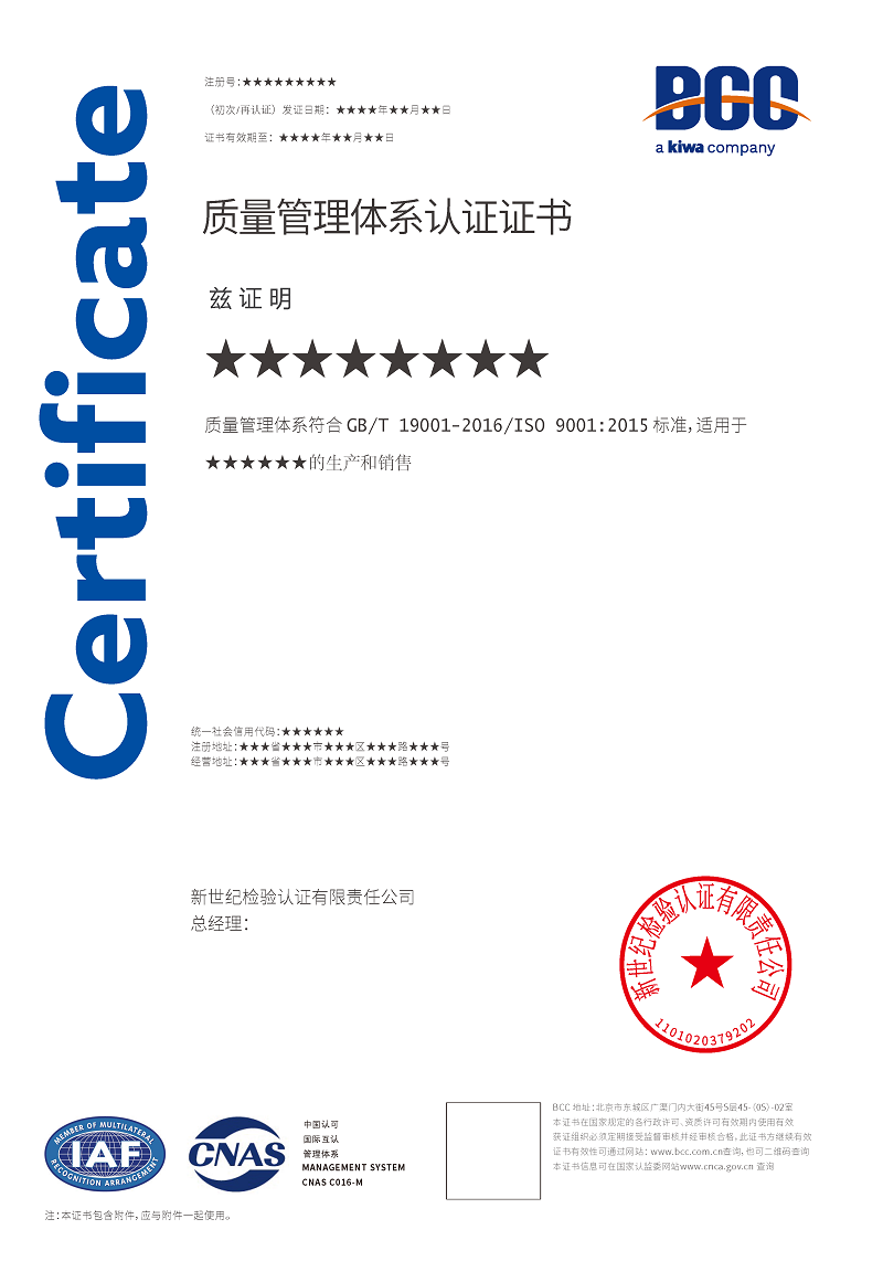 本頁涉及的認(rèn)證服務(wù)中均有對應(yīng)的《認(rèn)證實施規(guī)則》,BCC擁有其最終解釋權(quán)。任何組織及個人未經(jīng)BCC許可,不得以任何形式全部或部分使用(法律要求除外)認(rèn)證相關(guān)信息。如需獲取相關(guān)實施規(guī)則請用以下方式聯(lián)系獲取:電話:010-58579316 郵箱:fwjs@kiwa.cn
