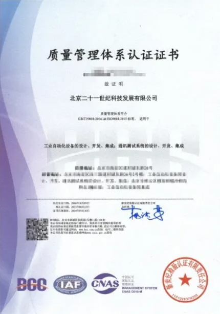 審核組通過現(xiàn)場審核一致認定,北京二十一世紀的運行過程、支持過程(包括資源、能力、成文信息)、管理過程(領導作用、策劃、目標、績效評價、改進)的控制情況均符合要求,提供的記錄能夠證實管理體系滿足適用要求和實現(xiàn)預期。