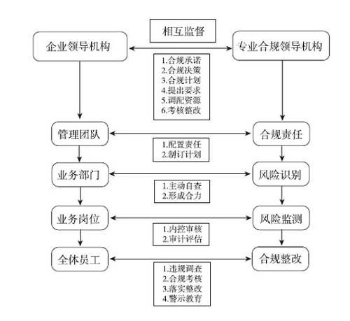 合規(guī)管理體系要融入業(yè)務,且有效落地,最終離不開人的推動和執(zhí)行。因此,必須有相應的合規(guī)管理企業(yè)架構。合規(guī)管理體系的六項基本構成要素(領導機構、合規(guī)企業(yè)、制度計劃、風險識別、監(jiān)測報告、教育整改)。