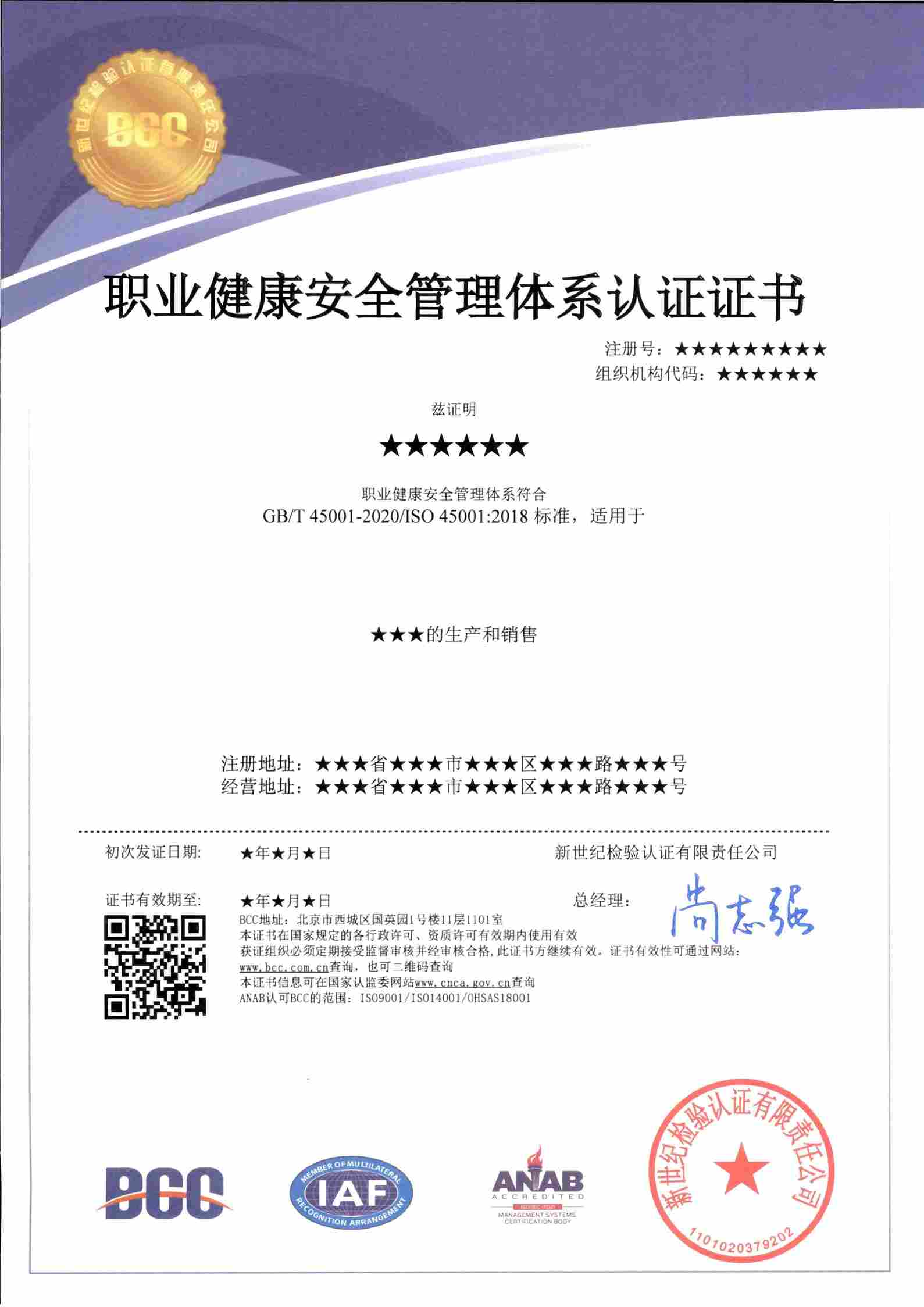 由上您可以看到:上面的標(biāo)志有BCC認證機構(gòu)標(biāo)識、IAF認可標(biāo)識、ANAB標(biāo)識、CNAS標(biāo)識等。