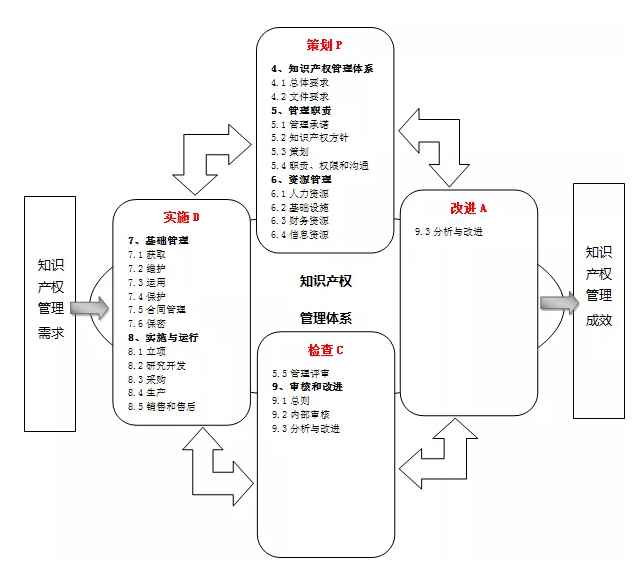 《企業(yè)知識產(chǎn)權管理規(guī)范》的國家標準以PDCA(策劃、實施、檢查、改進)循環(huán)管理模型為理論基礎,以基于過程方法的知識產(chǎn)權管理模型為構建基礎,明確以企業(yè)為對象,從企業(yè)知識產(chǎn)權管理策劃出發(fā),明確企業(yè)產(chǎn)品研發(fā)、擴大市場、防范風險、提高效益等知識產(chǎn)權需求。